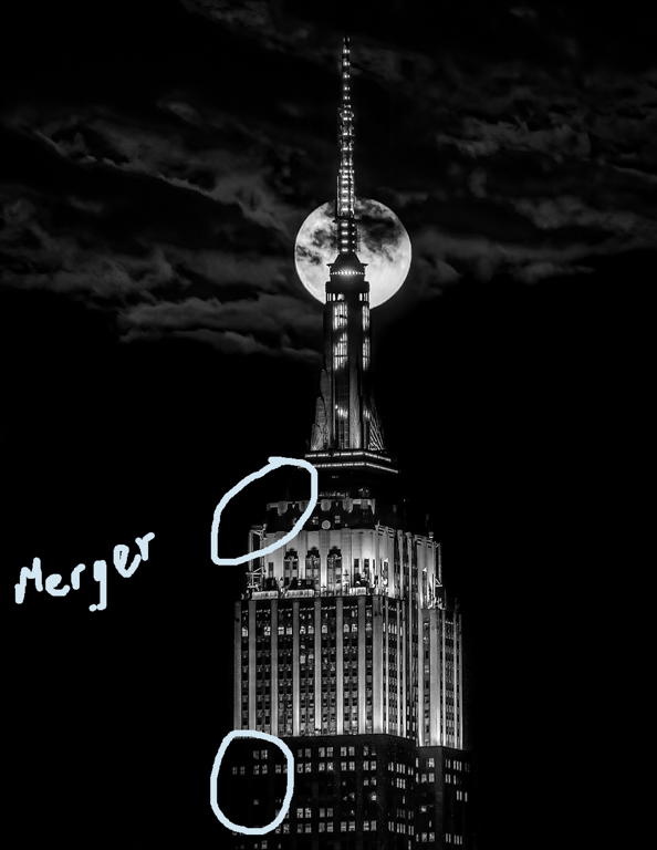 This is a very striking image with the moon so perfectly postioned and the clouds adding drama. I have circled two areas where the dark sky merges with the building. You may wish to check the edges to dodge these areas to create the separation. |