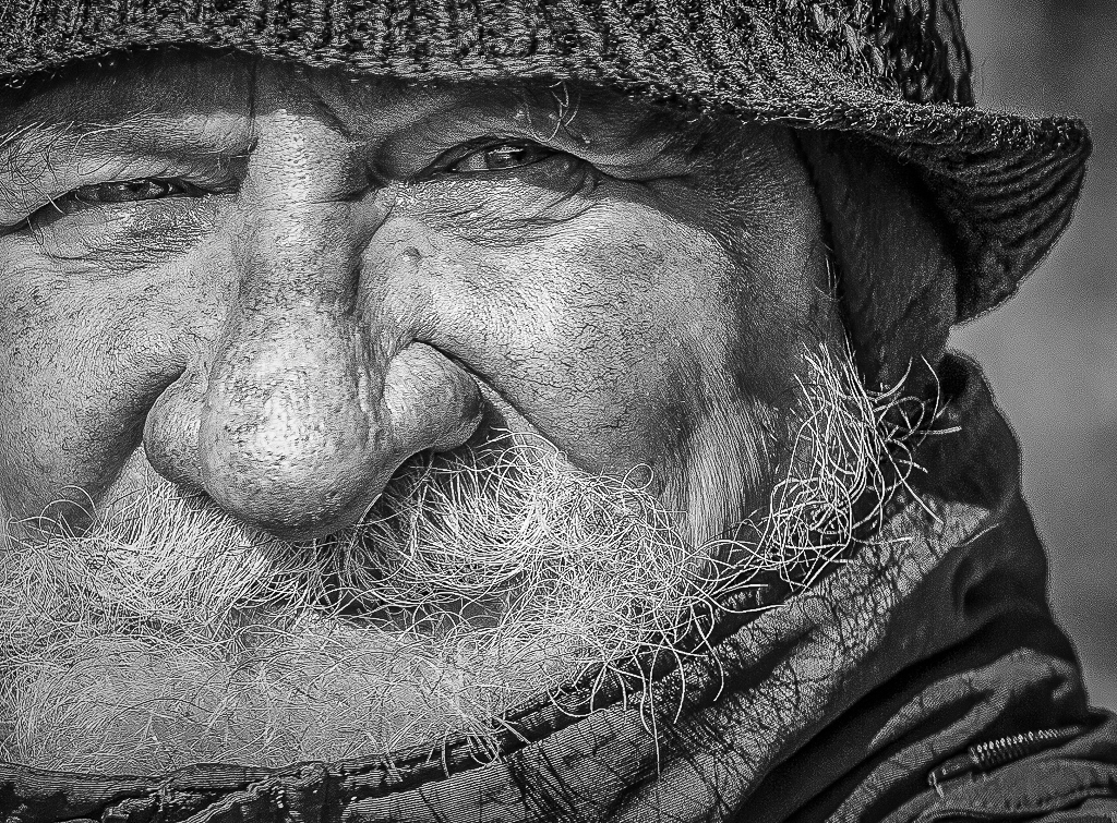 Since you have questioned the judging disparity on this image, I’ll try to give my opinion as a judge. I wouldn’t normally post an image that has already won in competition, (please see guidelines for DD above.) Your crop is wonderful and the person has distinctive features. Black and white is the perfect choice for older gentleman. I am including a warmer version just for an option. What I might downgrade on your image is that the eyes are the most important feature in portraits, and he appears to be squinting into the sun. There are catch-lights, but also a distracting horizontal line through his left eye. I assume you would add fill light, but maybe moving him away from the sun may have proved effective. Just playing devil’s advocate. As Jon said in his e-mail, judging is a crap shoot at best. I hope you stay with us. |