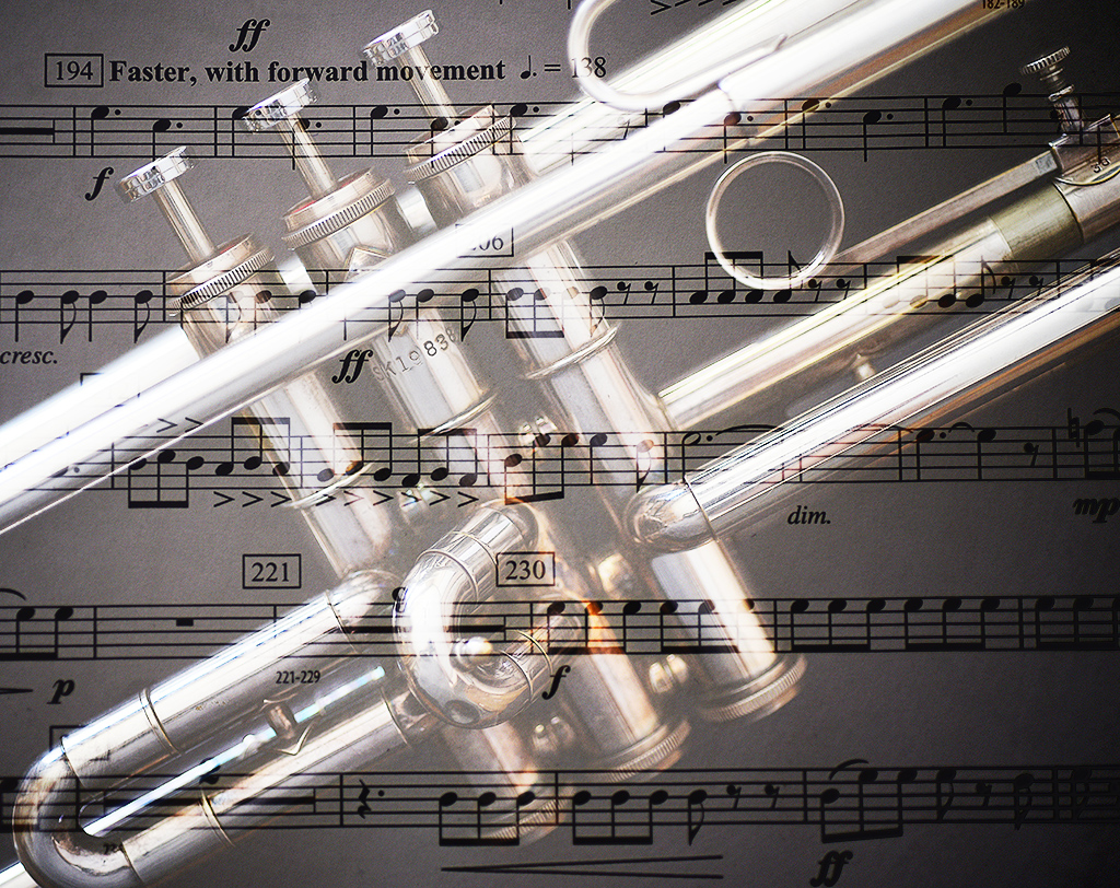 Excellent work in camera for your project, Karen. The text is sharp even for my bad eyes! I like the color combinations, detail and the exposure is terrific. Like Judy, I might like the music as a background to the trumpet better. Your title leads me to believe that you wanted the music to take priority. Did you try it both ways? I used a radial spot to try to replicate what I thought that would look like. Beautifully composed and cropped too. Strong diagonal as Judy mentioned. I'd put this on a wall. |