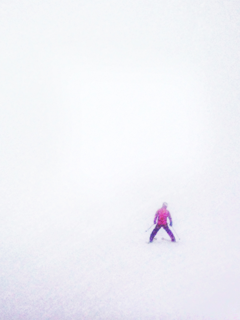 I like the image as is, but in my opinion, it could be made better by a little more and less post processing. I am assuming that the fog is why the skier is soft and the color is muted. That is good. The snow is a little too blue for my taste, with splotches of magenta. I agree with Judy, that you can make the subject larger with a crop, yet still let the viewer imagine the large slope. I think a vignette helps, but I'm not sure I think this is particularly a "slight" vignette. If you consider lowering the opacity and increasing the feathering of your vignette, I think you might be happier. I don't know what editing options there are in your phone, so I'm using Adobe terminology. |