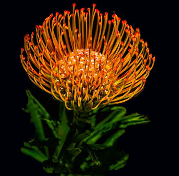 I know what you mean. It really is a good composition. I'm not sure about the sharpness either. I used the HSL slider to lower the luminosity of the green, slightly shifted the flower to the left to add a little tension, and removed some orange spots from the leaves. I couldn't figure out the black areas through the leaves, so I used the patch tool in PS CC to try to smooth the area out. I assume it may be from trying to install/clean the black background. I think it has great potential. |