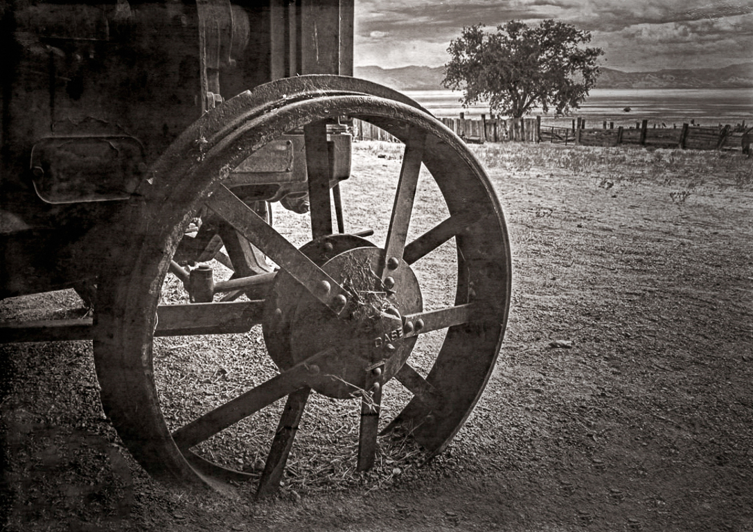 I added a little canvas to the bottom, and converted to old time B&W in PS. I think it may eliminate some of the problems noted above and unify the parts. I think the composition is great with the background included. |