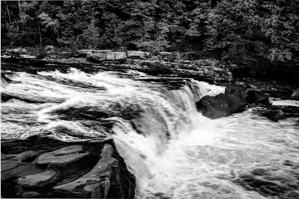 Is this better. I added a motion blur in PS to the water, and masked out the rocks and trees. |