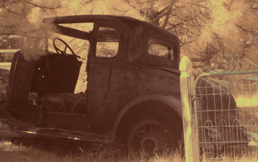 I don't know anything about IR except that is is a filter. Do you have a converted camera or an lens IR Filter. What is the effect that you hoped for. I agree with Ken, that the gate detracts from the car, which though the image is untitled, I think is the subject. My eye goes straight to the bright gate. I might have moved left until the gate goes away. Good experiment though. |