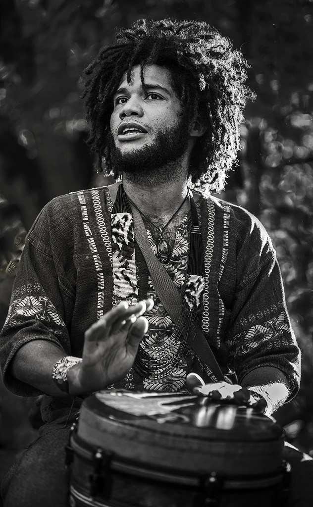 Hi Pete, Just thought I'd throw in on your image. I like the work you have done with this story. I know our judges worry too much about blow outs and sometimes miss the story. I really like his colorful attire, but the image is about his face to me. I used the patch tool to eliminate more background light, converted it to B&W, added a radial spot to him, and a vignette to try to direct the viewer more to the left. Here's to you, buddy!