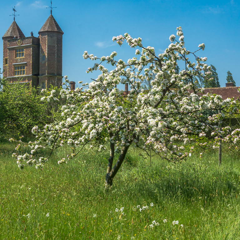 I think your image is colorful, sharp and interesting. Since you probably cannot prune on private or trust lands, I suggest you can crop! The flowering crab has a wonderful shape. |