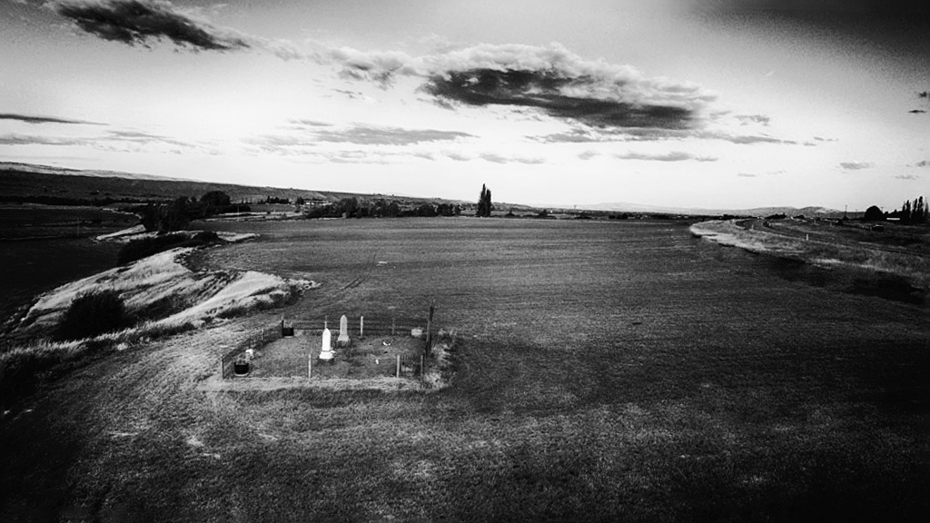 I wonder if a conversion to B&W might tell a different story. I eliminates the roadway in PS CC but didn't work on the heavy vignette, as that would be easier on the original prior to a conversion. I would maybe straighten the image along the edge of the cemetery too. Nice diagonal created from the white marker to the black(now) trees.