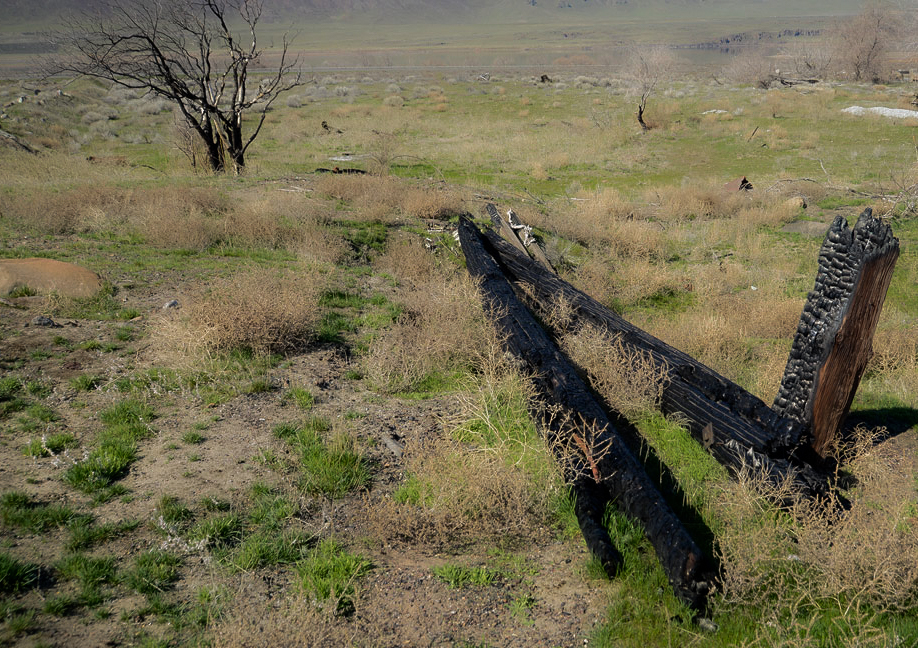 You captured the dreary all right. I wonder what it would have looked like if you had shot low from between the burnt timbers, I made an image that isn't so dreary, but not what you were after. |