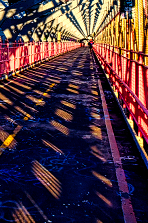 I like the colors of your image. It looks very sharp to me and I am amazed that you managed walking, and I assume, hand holding your cell, from Manhattan to Brooklyn. I was on a WW II destroyer in the Brooklyn Navy Yard in the 70's and the breeze along the East River below is usually quite strong except in the summer. I am also of the opinion that the composition can be made stronger with a crop. I struggle with composition myself. I also tried to put more emphasis on the reds and blues too. I'm not sure how Luminar 4 works, but in PhotoShop I sometimes create a B&W layer to check for tonal quality. The image looked a little flat (no real blacks or whites,) which might be why you liked Cheryl's contrast boost. Good eye! |