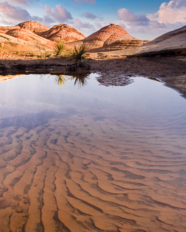 Another good eye in my new group. I am going to struggle to keep up. Your image is very well composed and sharp. The composition makes me envious and the colors are terrific. It is exposed to the left, even though it was dusk, I still like data the shadows. IMO the image could be made stronger with a couple of additions. I cropped it to 4x5 since that is what you usually shoot. Even though there is not a horizon, the two plants in the mid ground seem a tad off to me, even though I cannot say why. I thought I could use three rulers in PS to force an appearance of level, then straighten to those. Also, the sky could be replaced, so I added another sky. Just possible changes you could try if you like.
