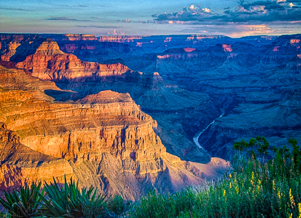 Your composition is great. I like the triangular relationships between the light in the grass leads to the sunrise area of the canyon to the cloudy sky. While this is a grand scene, it plays together well, and needs to hang on a wall. Your colors are good, and the image is sharp. I wouldn't focus on the river without a major vertical crop. The Luminar edit isn't as good as your presentation image, IMHO. I took this into PS and used Topaz (Clear, Precision Contrast, and Noise filters, and the Basic Correction Look) although I don't think it needs anything. Just trying things on a great image. |