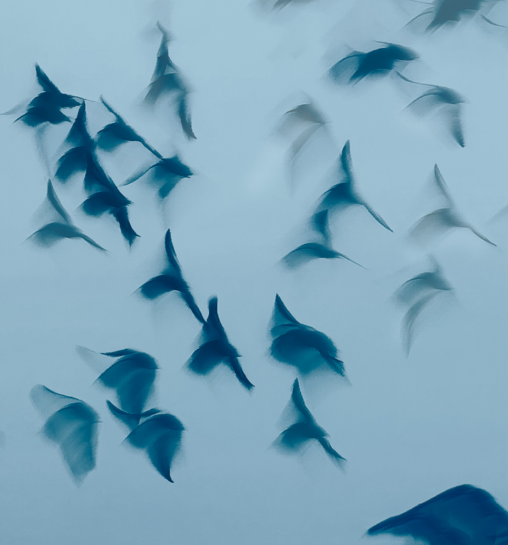 I am a big fan of abstractions and think this is a good one for me. I like the color and motion. While knowing they are out of focus birds, I don't see any need in this case to focus on any one bird. I do see a V shape in flight that could be utilized by cropping and burning. I lost some of the color switching from Adobe to srgb, you could play with it similarly. I used the new LRCC preset "Cinematic CN1." Good eye, Wendy |