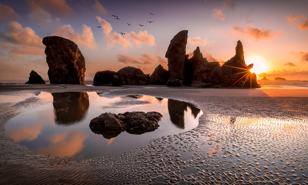 I wonder about what lens you used for this shot, as the horizon looks slightly curved to me. I love the Oregon Coast and it provides classic shots, which I think you have created here, Dan. I'd hang it on my wall. I might open the shadows on the haystack a little, but that's my only nitpick. |