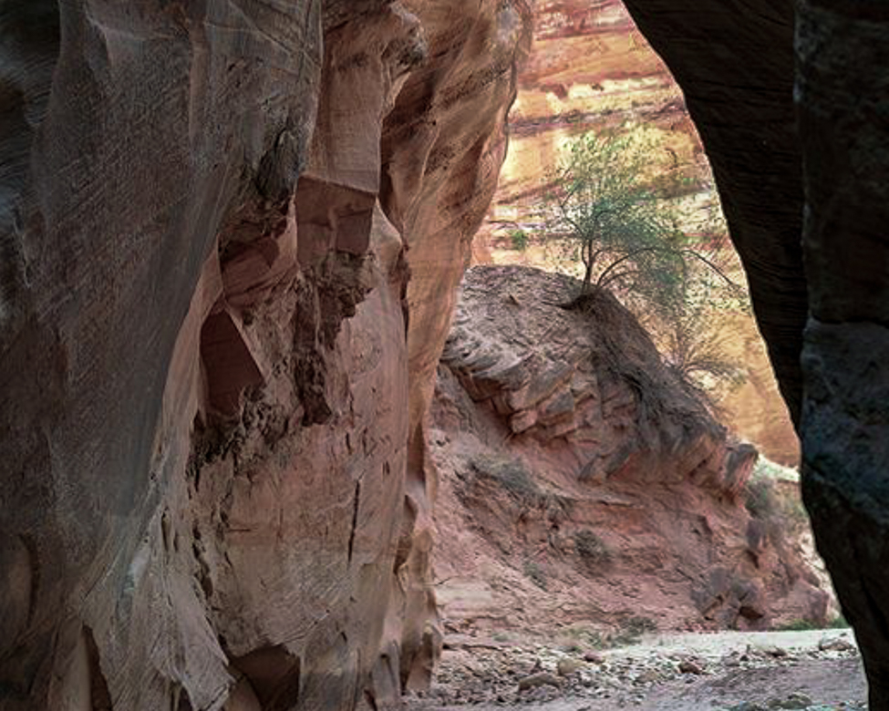 I think your original idea to create a horizontal frame would work for the image. I think you can make the tree larger yet still let the viewer know that the image came from a slot canyon. Your work with your gear is amazing, and never has any flaws I can see. Splendid work, again. |
