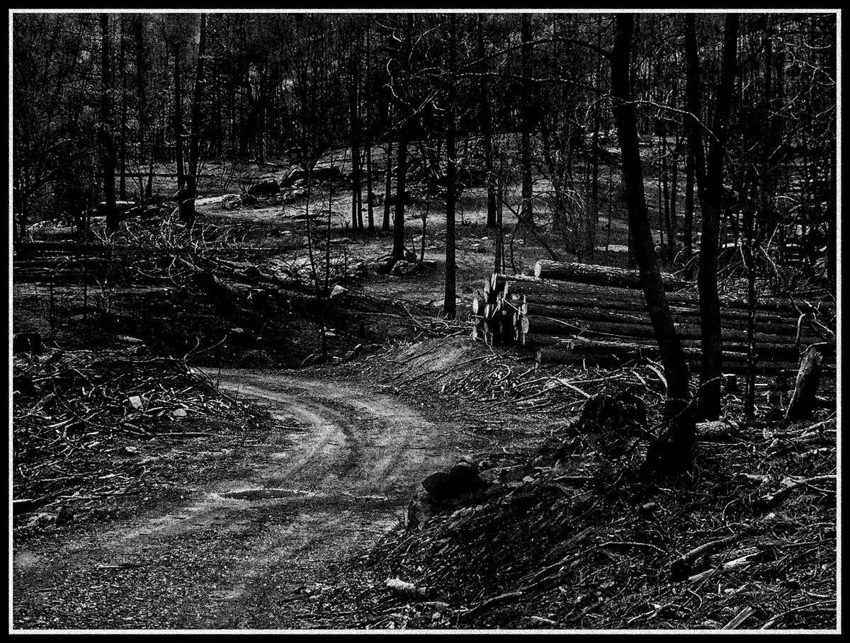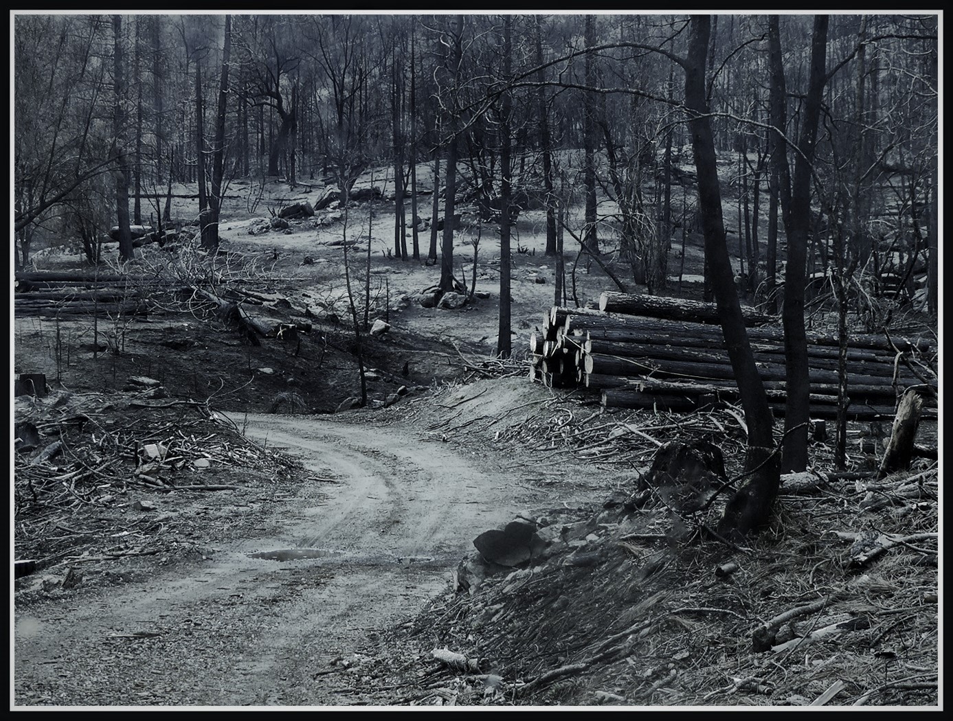 This is an excellent PJ image and while it tells a tragic story the pile of trees gives it a hopeful end. It looks good to me in B&W too. |