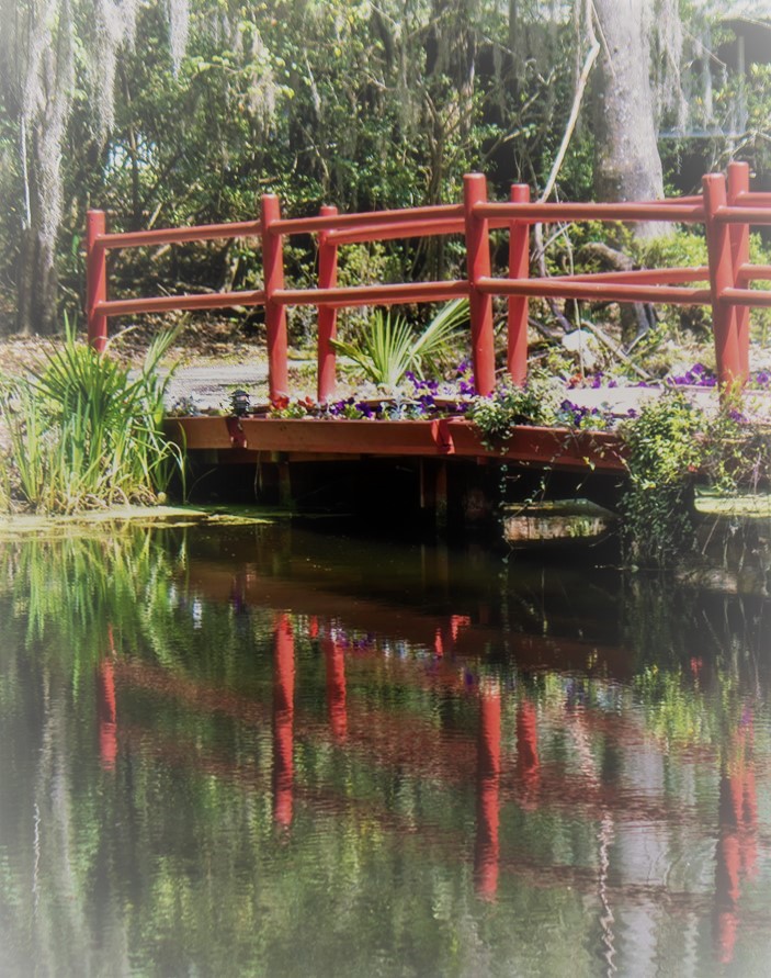 I like the bridge, and the reflection and the flowers and the moss, and the bushes and the .....