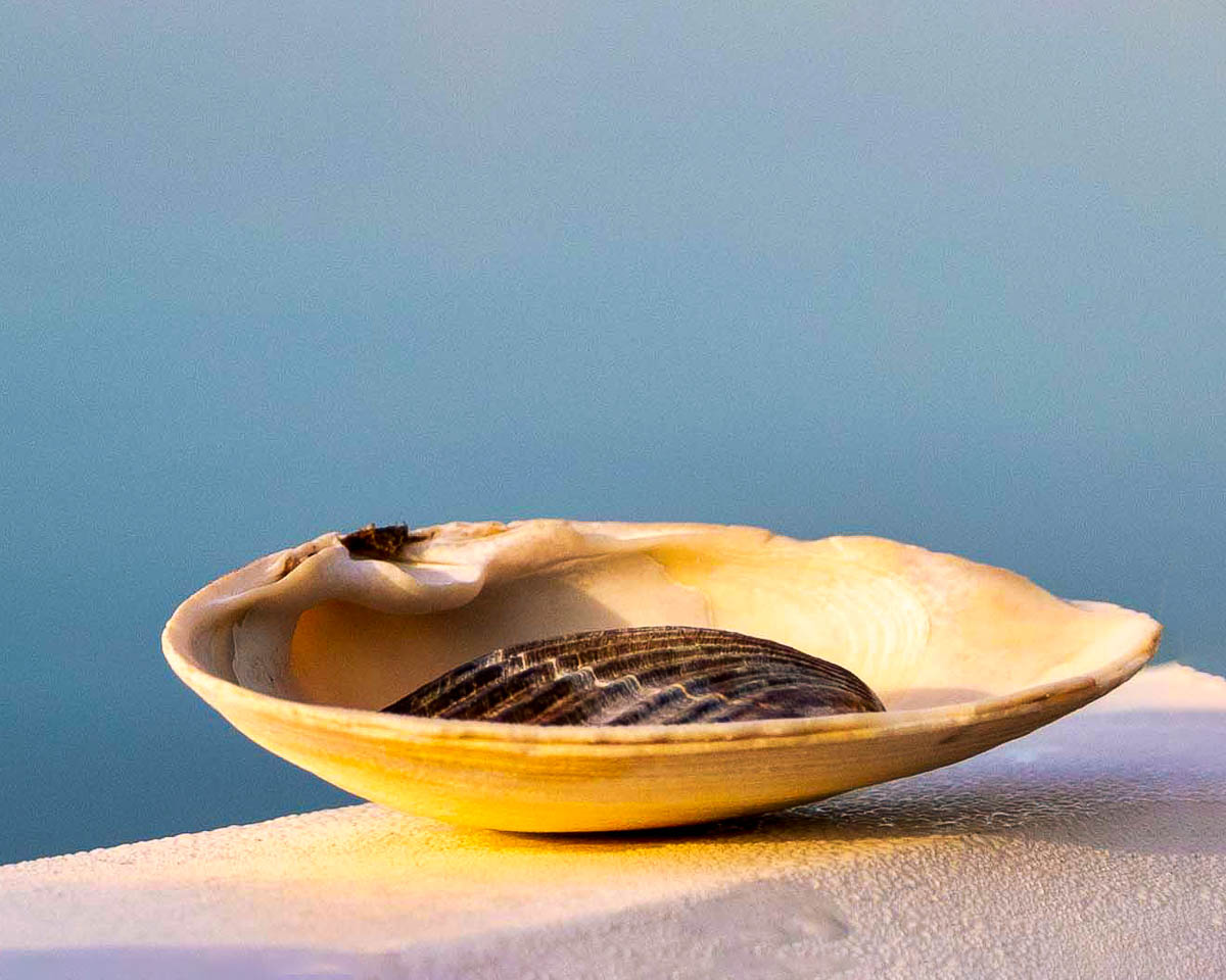 I cropped it to where you stated the story (Cradle me) is told. In LR I enhanced it to try to focus it better. I should probably have sharpened it too. I used the healing brush in PS to get rid of part of the right shell left after cropping. I re-cropped in PS using content aware to add extra canvas to the right.