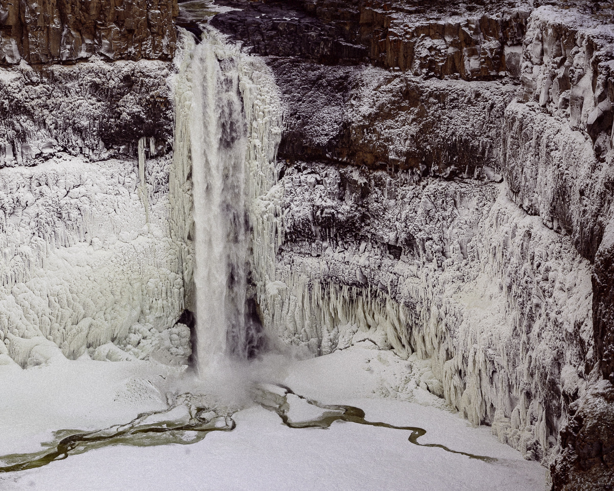 FYI, this was the frozen falls that day before the sun dropped (along with the temperature.) It was really, really cold, and the next day in the Palouse, we went to Steptoe Butte, where the clouds covered most of the butte and the Arctic blast was in full force. |