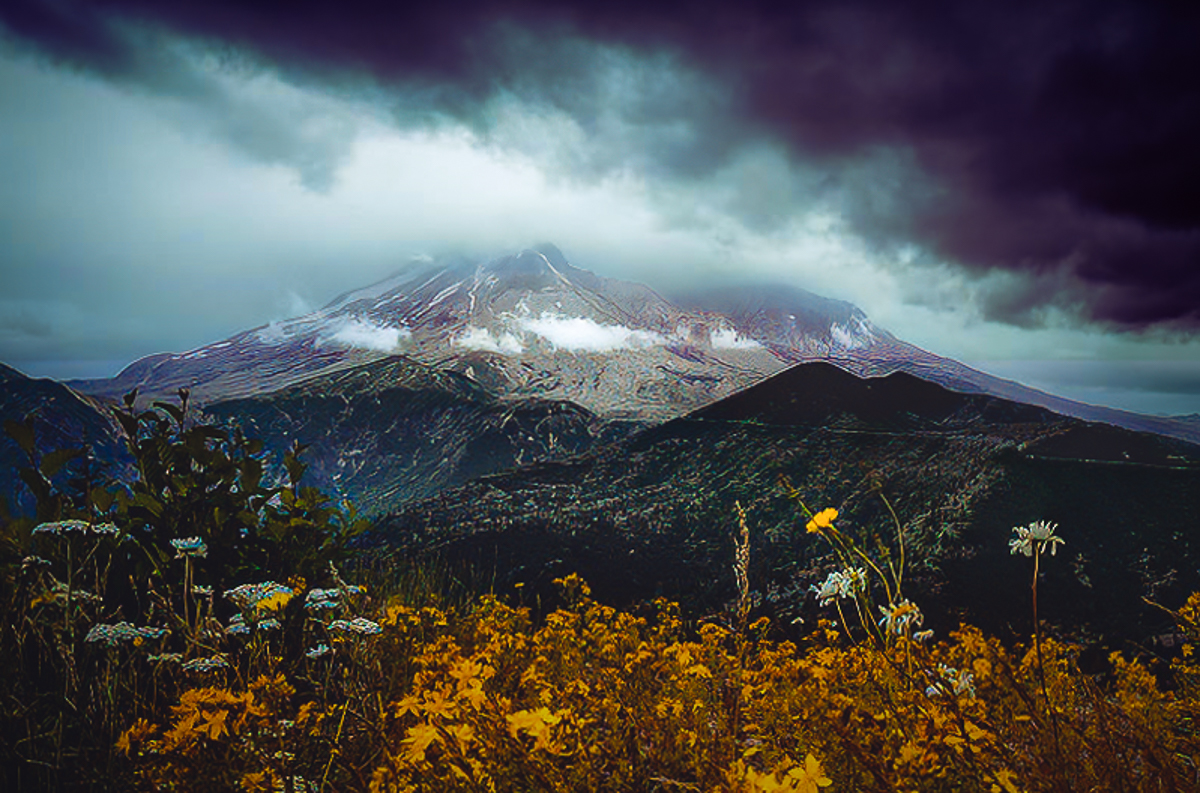 I don't know if the Beast is Mt St Helens, or the cloud that appears as a beast looking down the mountain to me. I see weird things these days. If the clouds caught your attention, the beast there could be D&B'd into more prominence.