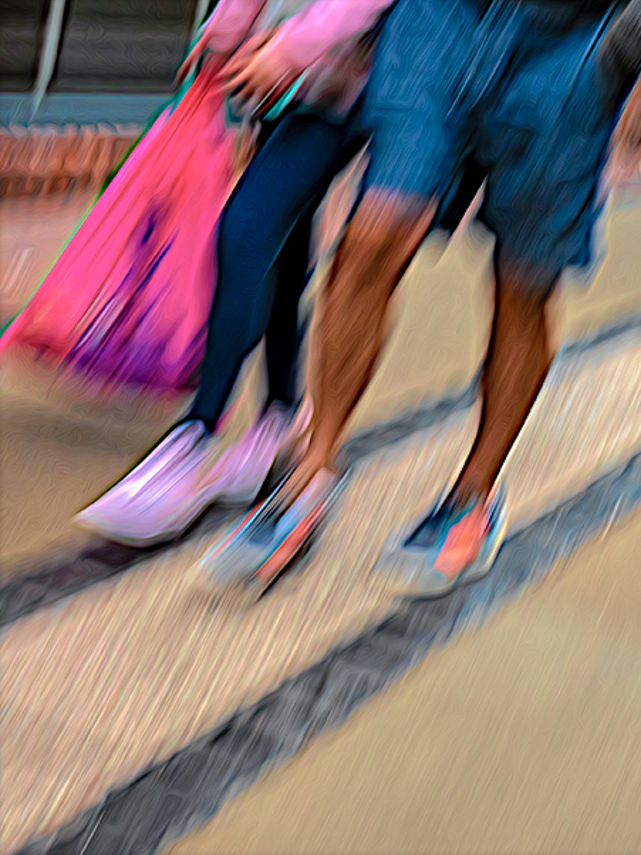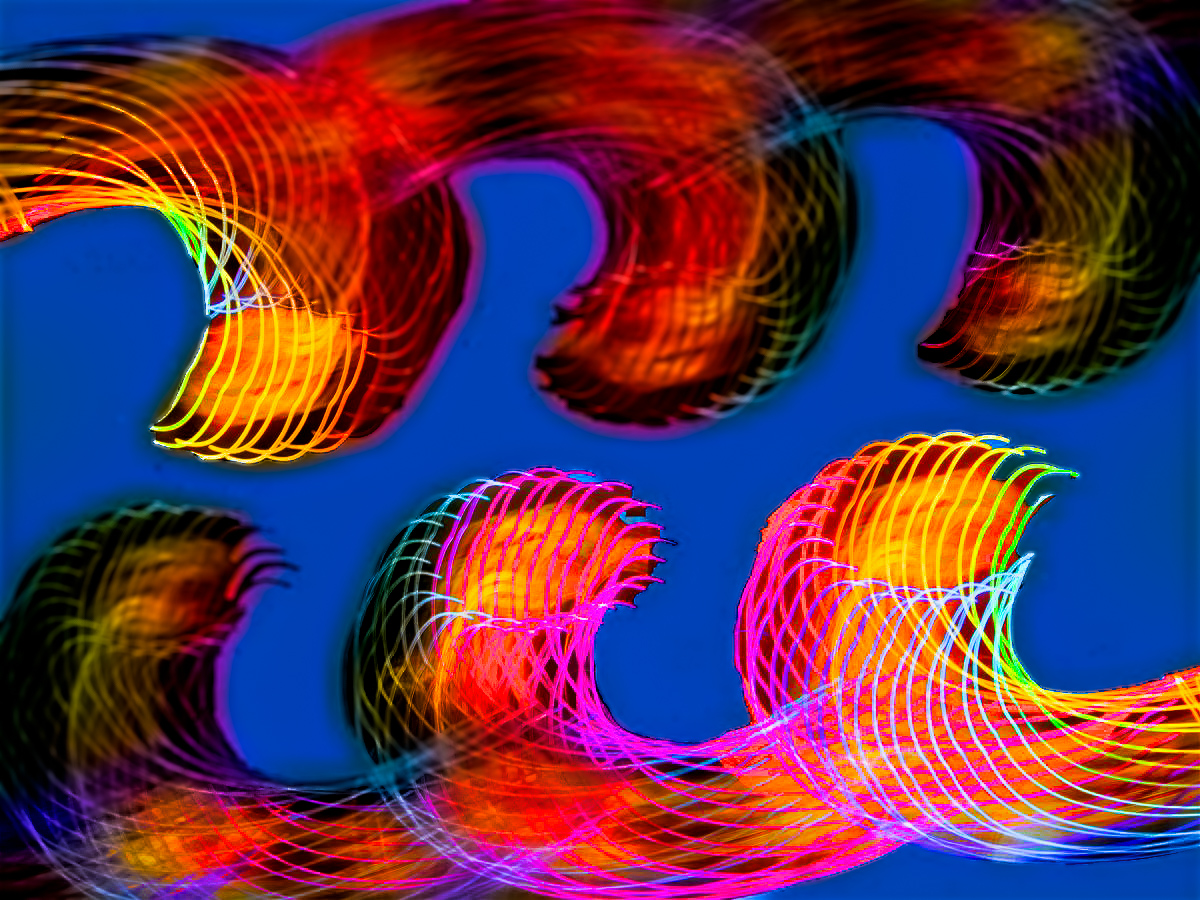 Thanks for playing with your image, Judy. I like it and can see the faintest hint of a face and hand (sort of like "The Scream,) at the opening of each of the light tubes. I'm less attracted to the pastel color palette. Doubling up was a good idea and presents a better canvas for your abstract. Excellent job. |