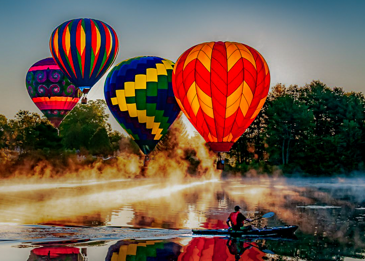 Hi Bob, I really like that you have added the glow. The red and yellow balloon is much brighter and separates the balloons into two odd numbers. allowing the kayaker to be a third element. I'm not so sure about the reflections and the kayaker being part of the composition. I might consider removing the reflections, masking, and brightening the kayaker and brightening the trees on the right, which I think compete with the green balloon. Pushing the light beams seems more dramatic to me. |