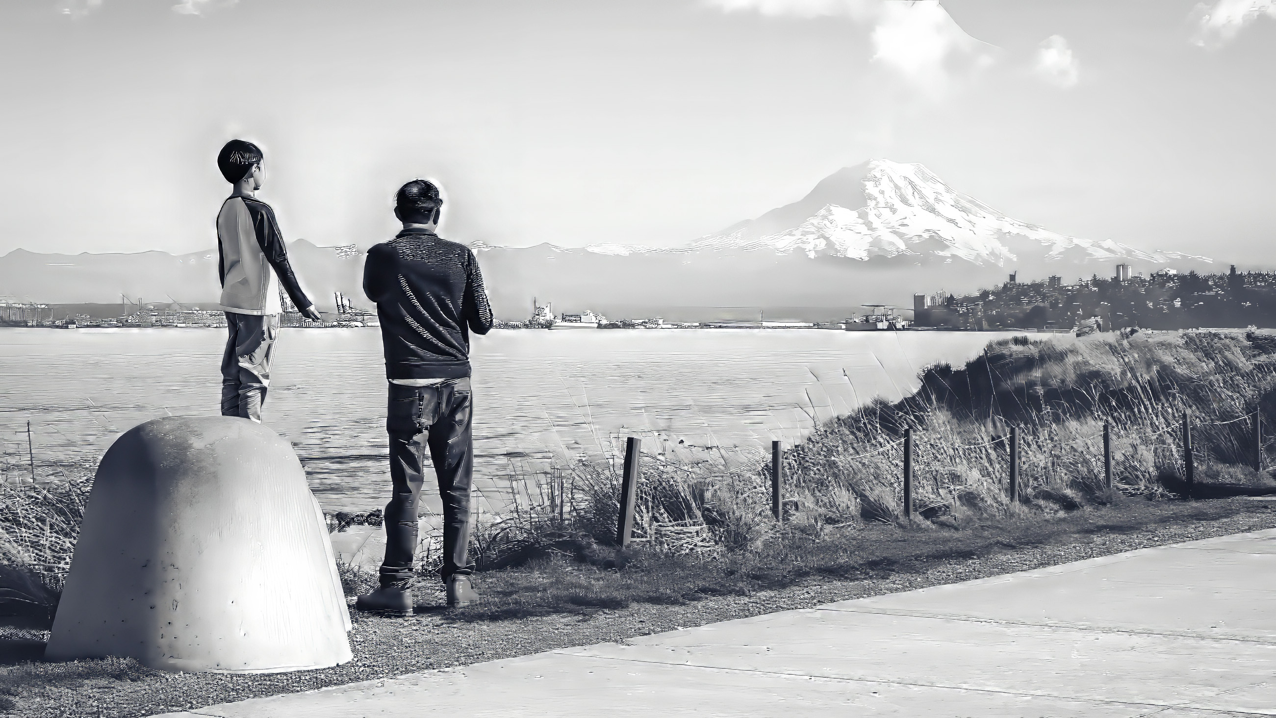 Thank you, Elaine. From the position of his arms and head, the man was taking a cell shot of Mt Rainier, so I wouldn't expect the child to touch dad. That is just my version though, and your version would be infinitely more intimate.