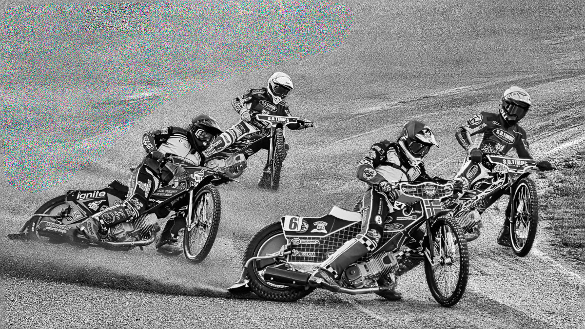 I really enjoy looking at this image, Tim. I think I would enjoy more space around the riders, but I realize there may have been elements that got in the way. As a general group, we can add canvas, and I did in PS just using the crop tool with content-aware fill. I used the clone stamp tool to remove some areas of repetition that content-aware seems to create. I added some grain to the new areas to try to match what you had and brightened the background to bring forward the racers. Just some minor suggestions to give a great sports shot more room. |