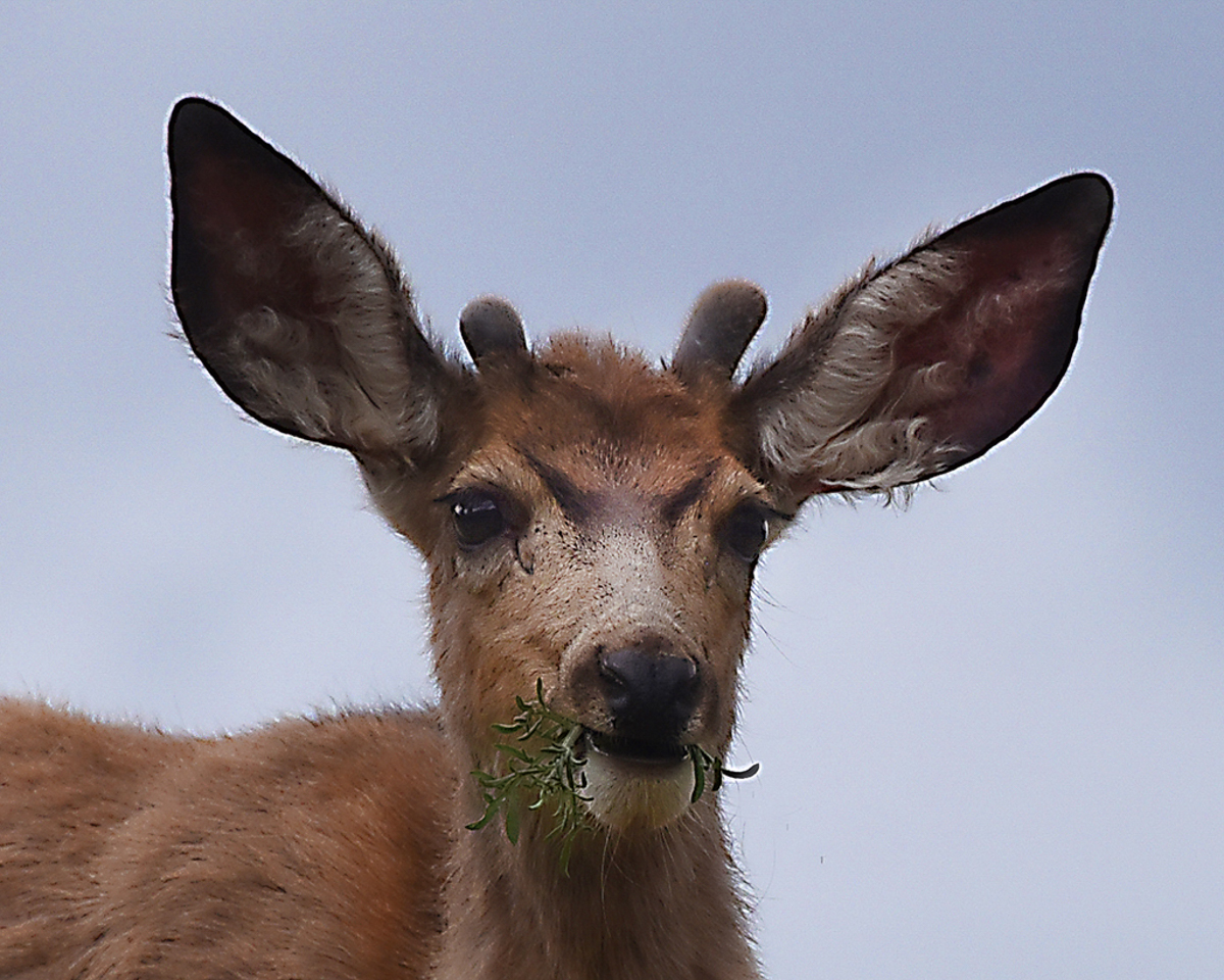 I hope after you caught the young buck, you let him go. I agree that global sharpening isn't always effective, and I did some reverse engineering with clarity and texture on the buck and increased the eye highlights as best as I could. If I took my time, I could add some white irises to make him more animated. Great "capture!" |