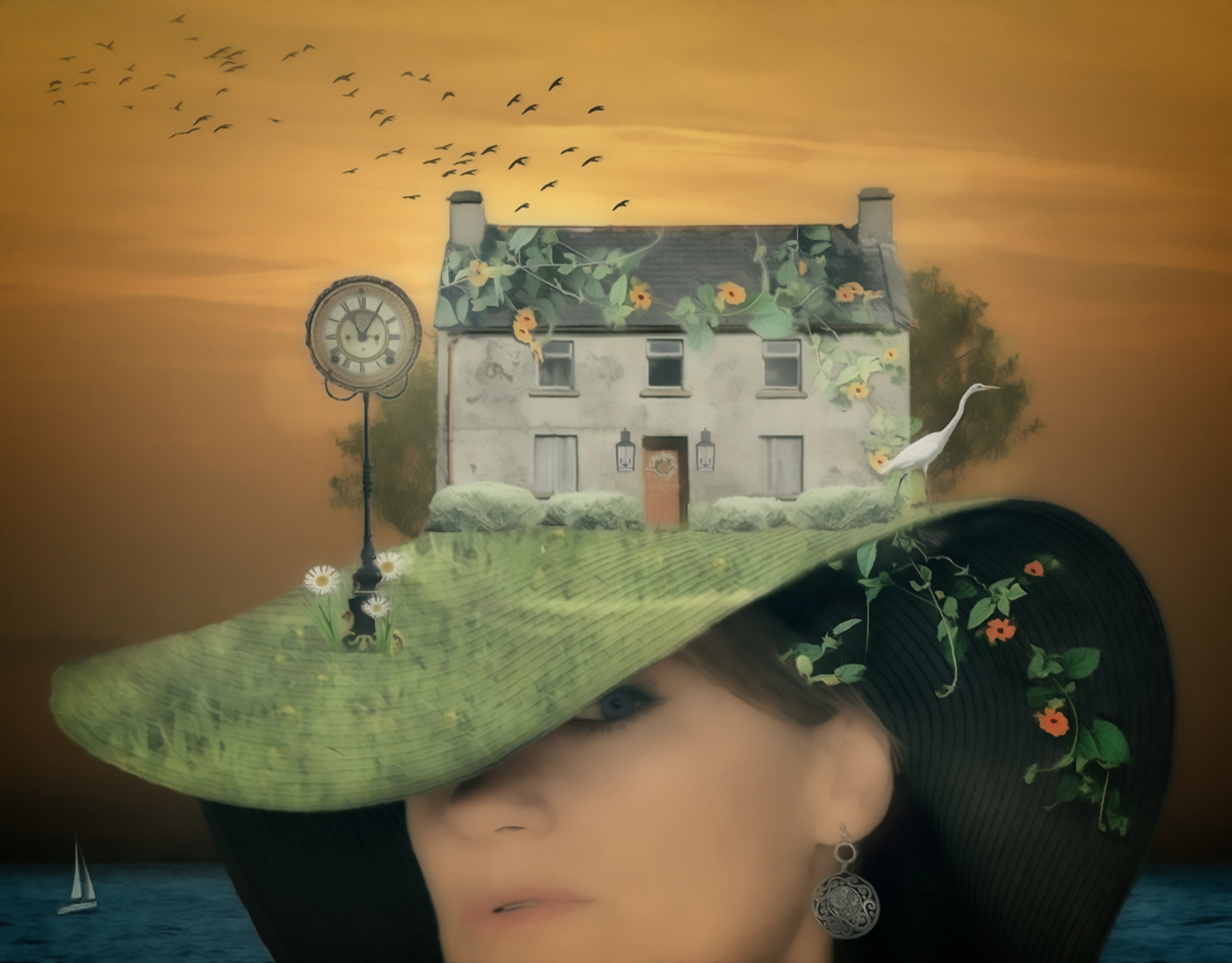 Hi Jan, Very creative image. I don't know what "other worldly" means to you, but I'm not sure it needed more glow. It has a lot of elements, and when I look at the tone map (or squint) the upper half of the image draws our attention. The face below the house has some glare that makes me linger there against my will. I burned my version with the colors close to the areas that I felt were either too bright on the face, grass, and bushes. I then dodged the house, sky, and clock to draw the eye more to them as the subject. Hopefully a subtle change. Your sense of color and light are amazing to me. I think the image could have been busy, but the color ties things together. Much to explore, even in the water. |