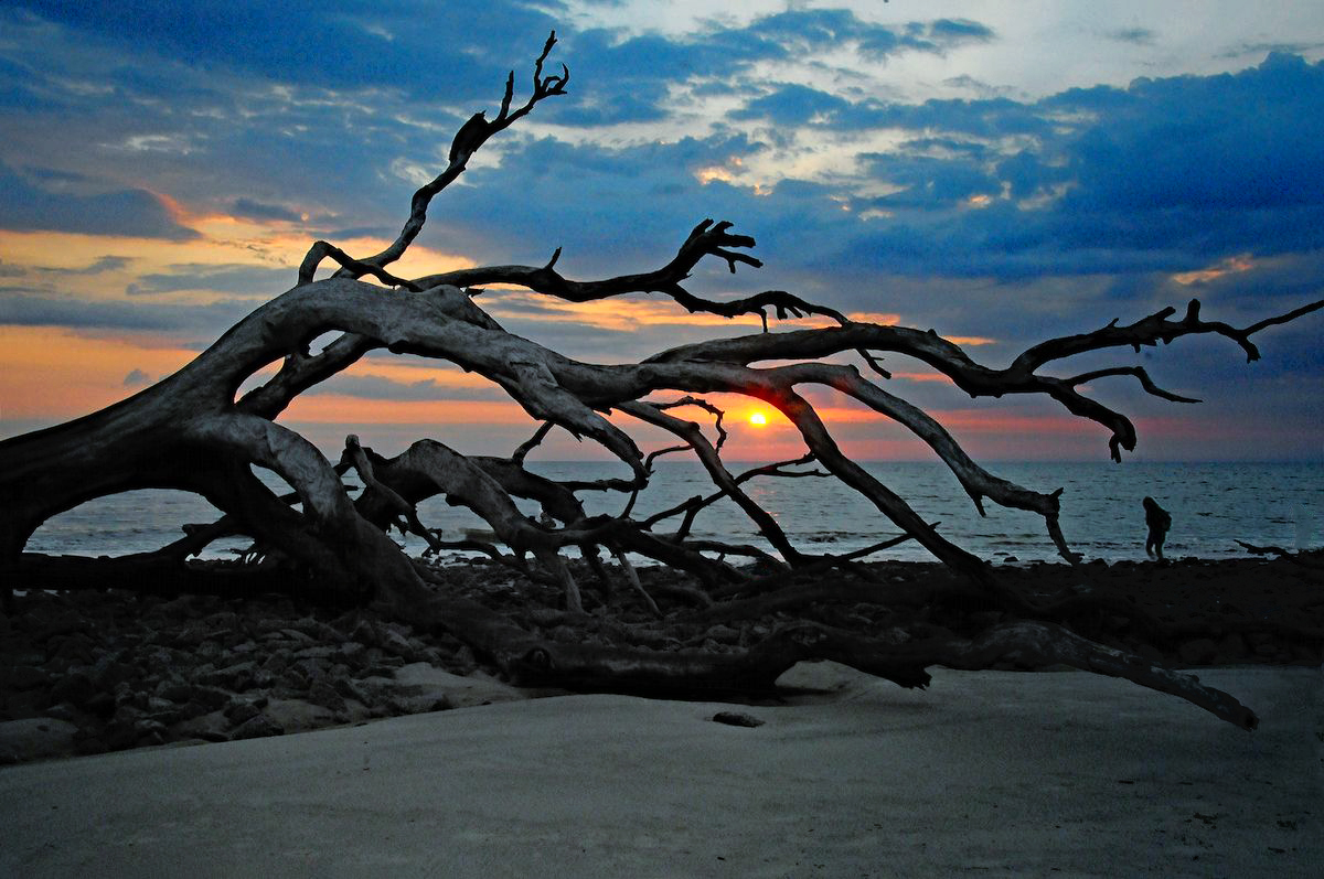 You have captured an ideal shot of Jekyll's Island. I think the original image color and is terrific, if a little less dramatic than it felt to you. It is sharp and the sun is in an ideal place. I'm not familiar any more with Luminar Neo, but I think it muddied the colors a bit, especially the driftwood. Maybe the dehaze combo did it. Nevertheless it is a great shot.