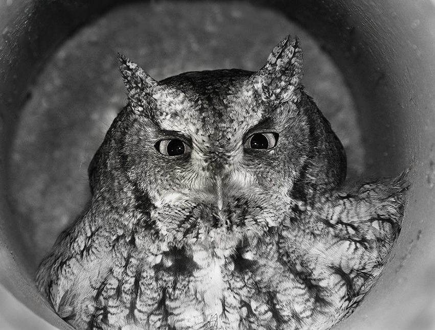 Hi Karen, Very sharp eyes, and a terrific story. I assume the colors were affected by the lack of light. I'll take your word for it that the owl was sunning himself, since they usually sleep during the day....