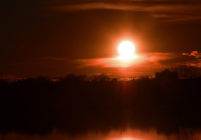 Hi Karen, Definitely a high contrast image. There really isn't much for us to edit except for the crop with the sun being so prominent and of course blown out. That being said, I think it is a creative shot, and am happy you had warm enough temperatures for a sunset image. I would consider another crop to play to the landscape more than an abstract reflection.