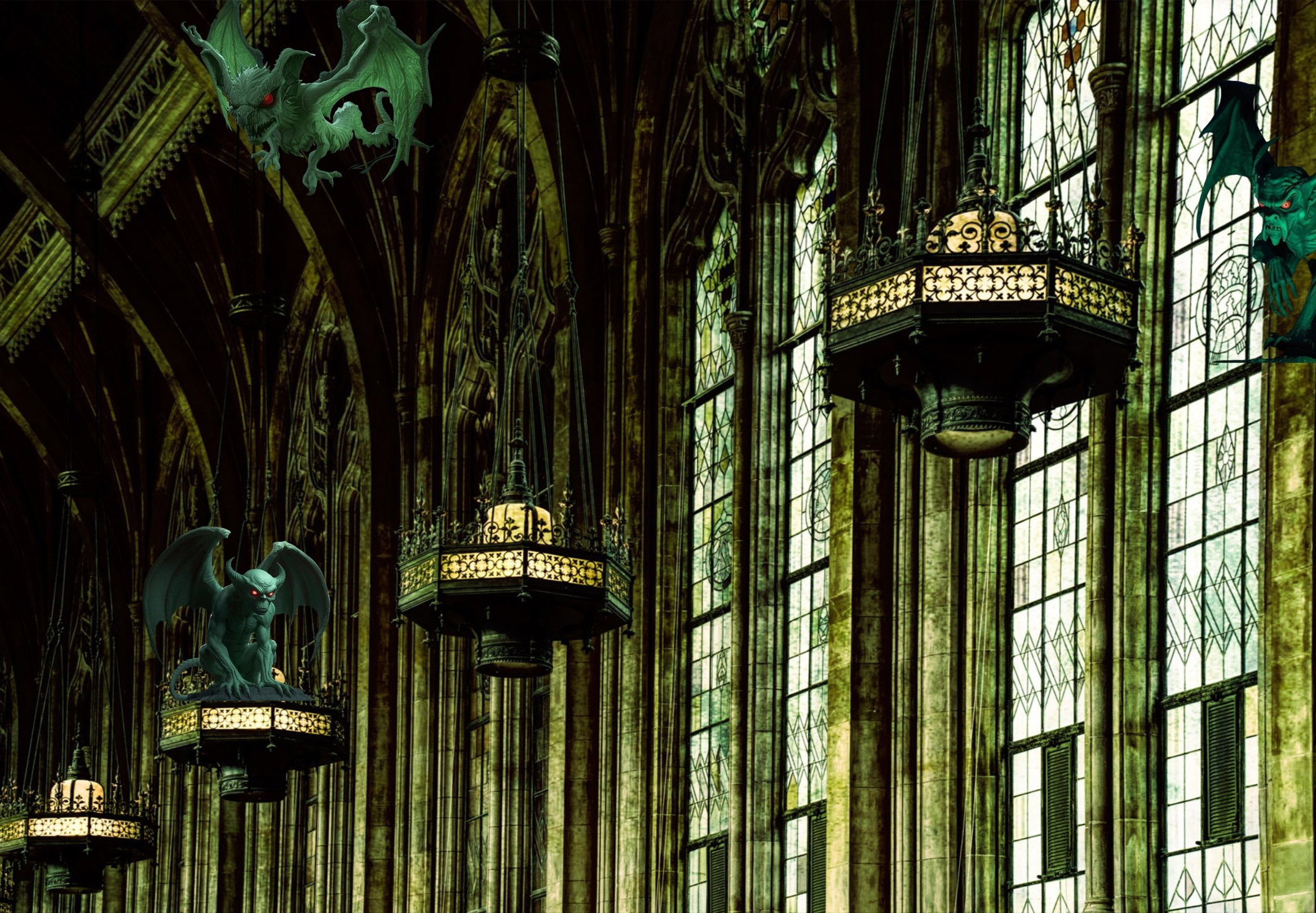Hi Judy, Terrific composition idea. I agree with most comments. You achieved a dark and dreary image. The gargoyles help the mood, but there may be a little base showing on the left and right ones that could be cleaned up.. O2 shows that you probably used perspective warp, but lost it in the final. If you used smart object layers, it should be fixable (I think.) The wing pieces are distracting to me on the right. IMO the transform needs to be there again to make it more solid. |