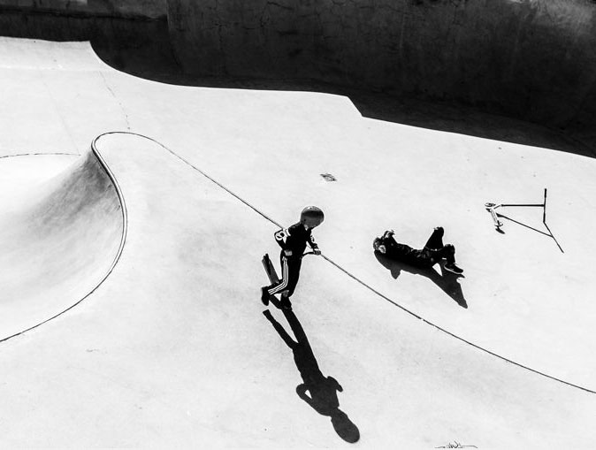 Colin, I think if you would crop about a third off the left and crop the top to the black you would have a stronger story. The white on the top right draws my eyes there, and the the boy on the left actually isn't part of the story. The boy in the middle, looking at the fallen boy makes the story in my opinion. I like the shadows and the black and white. |