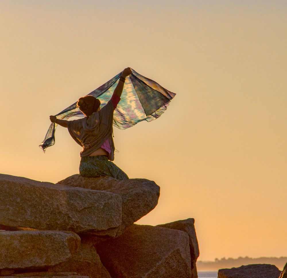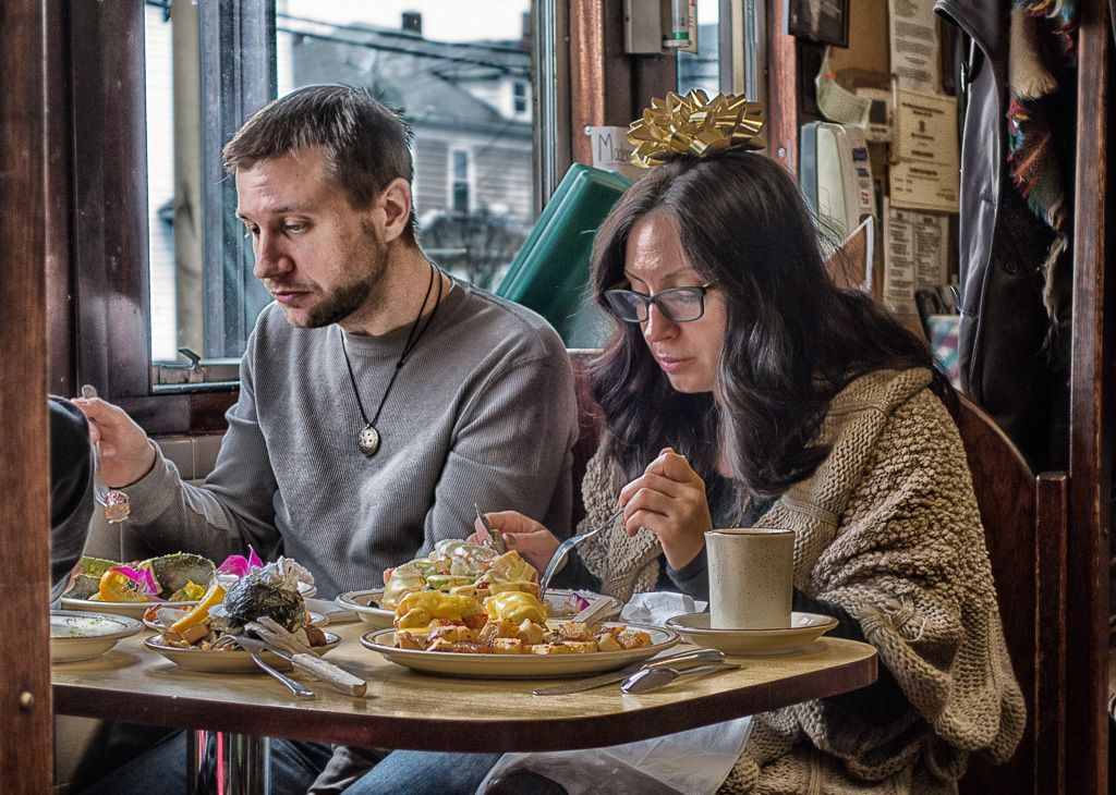 I love this picture! The blue and gray tones seem to mirror the woman's contemplative mood. I love the way she is sitting in the same pose as the picture on the left side of her. The only thing I would have done differently would have been cloning out the picture that merges with her head.The lettering doesn't distract me like that merge. I know why you didn't as you explained in your answer to Bill. But that is a nitpick. This is a great shot.