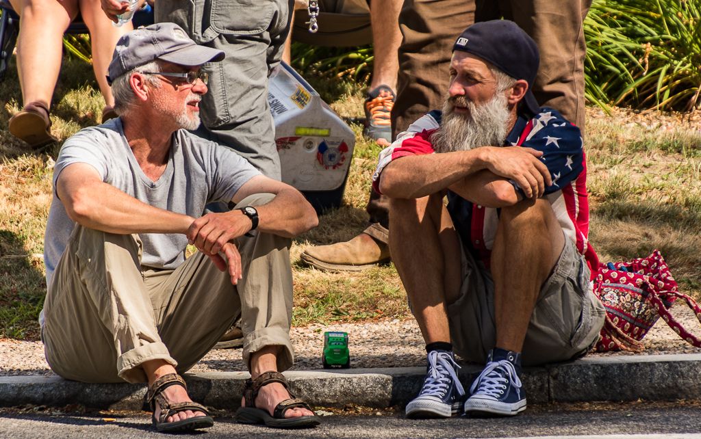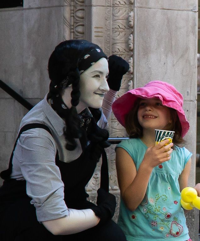 I like this photo-gives a bit of mystery as to what everyone is watching, and I like the face in the window watching you. Good seeing. |