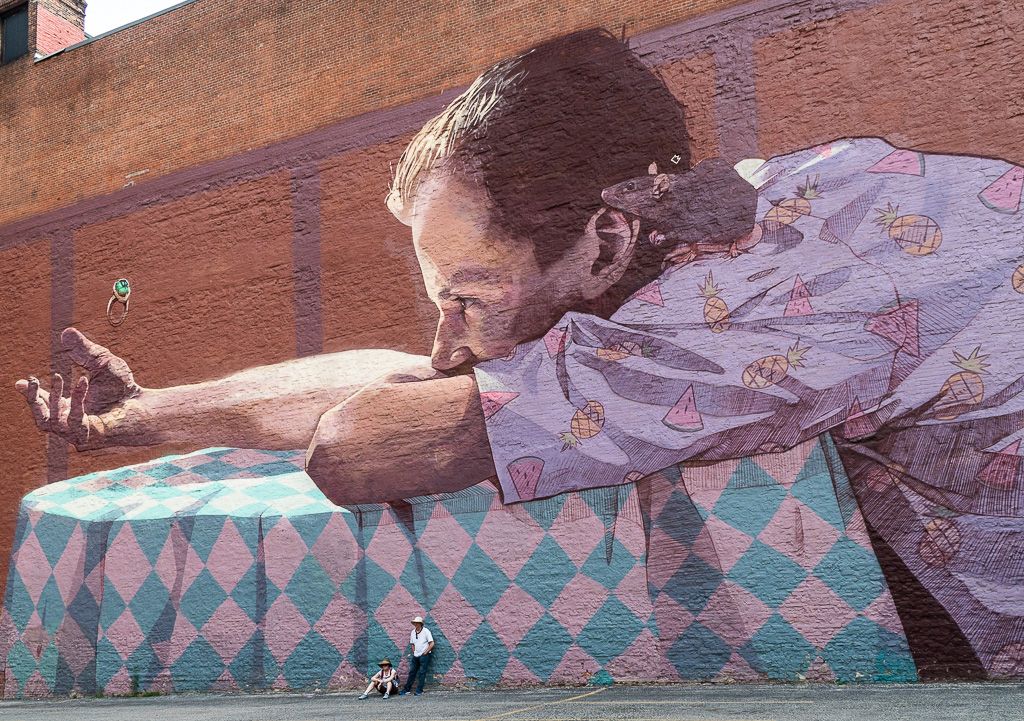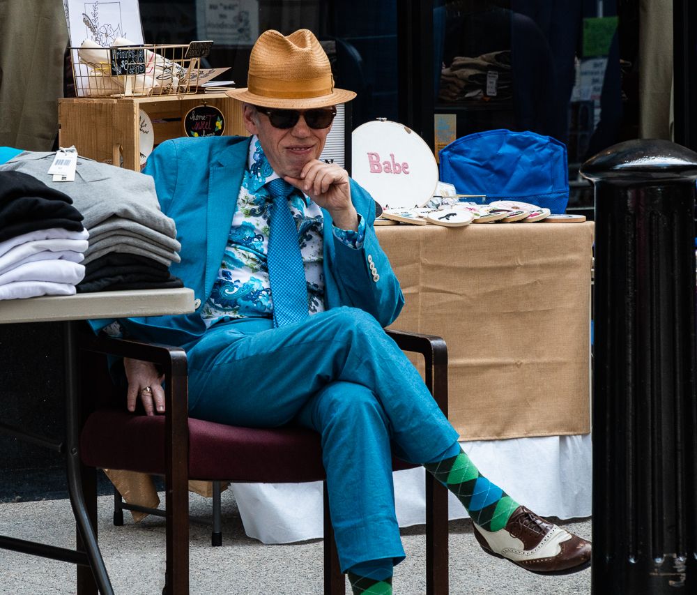 I really like this shot. The colors really jump out at me right down to the splotches of blue on the painter's hands. Beautiful picture. |