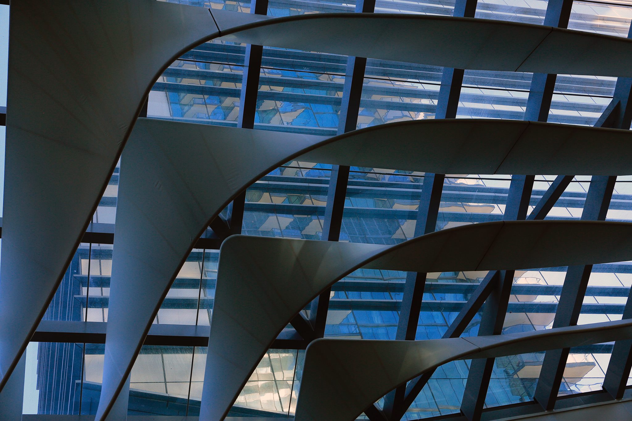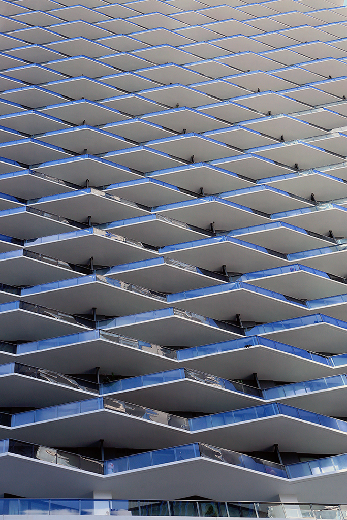 The yellow in the parking block is a nice contrast to the blue wall.