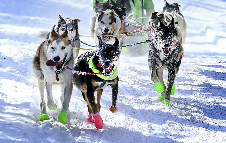 Usually dog teams like this are photographed from the side. The choice of location here enabled the full-frontal shot, which is unusual and makes it more powerful.