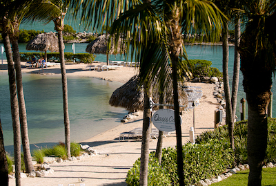 I think it's important to keep the ocean in so that we know where they are. It feels obvious to us that it's a beach because we've seen the original.I also agree it's important to keep the family members. I would rather see the three camera screen right cloned out than cropped out. Just my feeling.