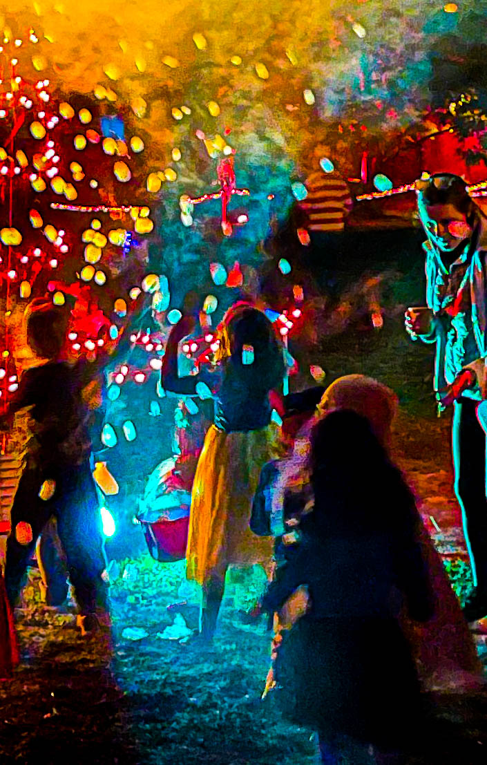 As for this picture, I think black and white is a good medium for the topic. Right now it has a lot of realism, to me it suggests a newspaper photograph of Halloween decorations.