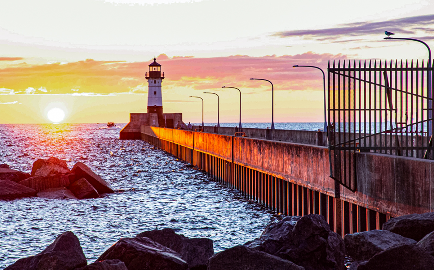 For my eyes, the sun is too bright, I would darken just a touch (just the disk of the sun, not anything else) so that I'm not compelled to look away from it. Because I found my eyes moving away from the sun I did not notice the motorboat until I'd studied the image for some time.