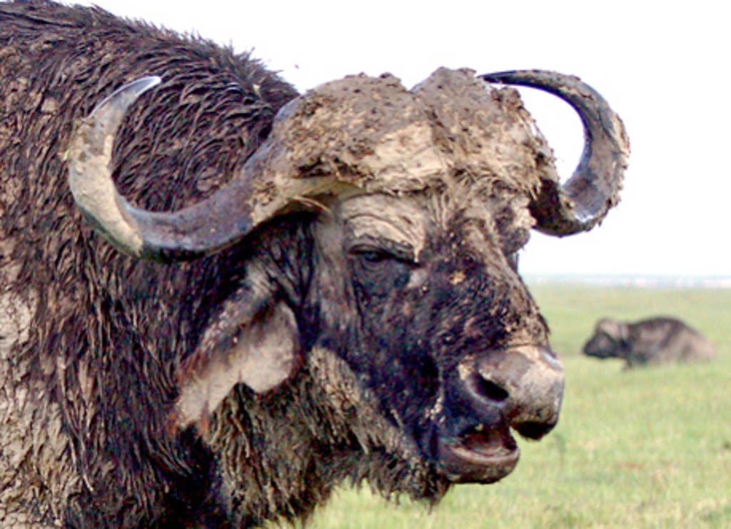 You both stole my line! This guy definitely needs a bath. I think this is an excellent record shot. The other buffalo in the background is well placed in the composition. Your subject's head position is good and it looks like he is either chatting with you or having a good chuckle. (Assuming these guys can chuckle!) I think you have another picture here as well. See my crop. |