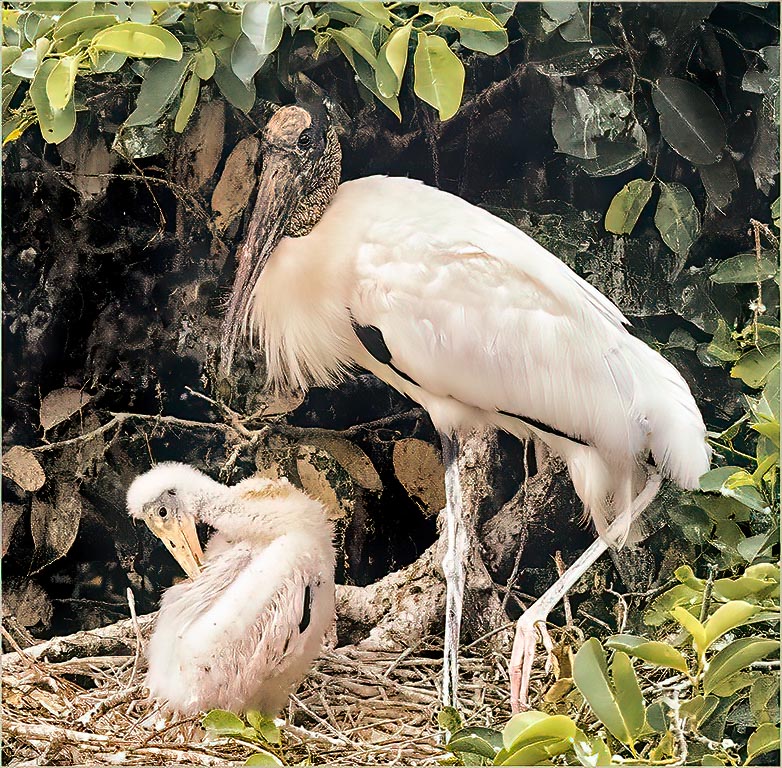 This is a great capture of parent and chick. I, too, felt the colors could be improved. In LR I warmed up the colors and darkened the browns in the background. |