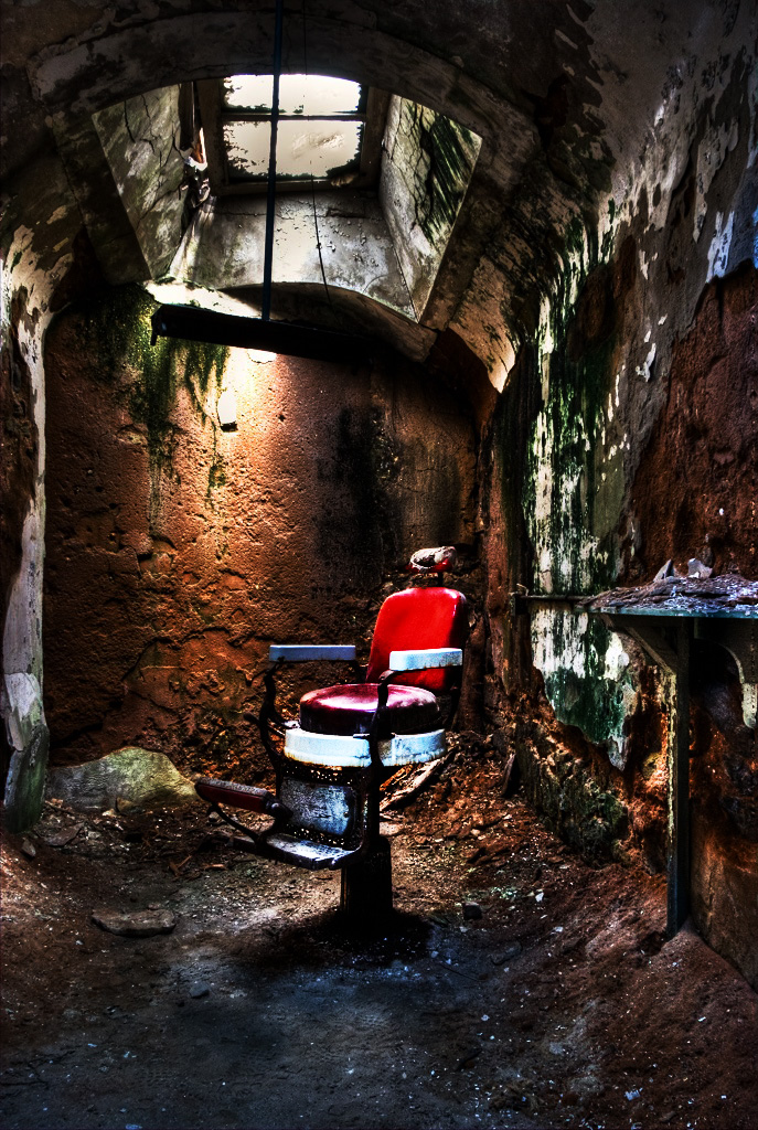Wow. What an evocative image.I really like the picture and the detail that you captured. My only issue is that the light from above and the bright stuff on the walls distracts my eye from the chair, which I believe is the focus of the picture.