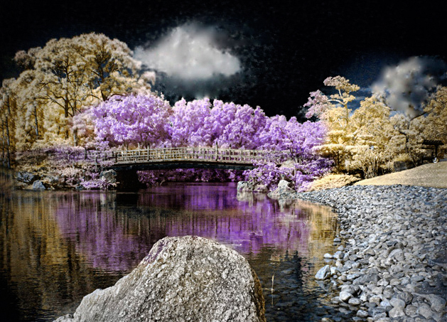 Art, I love the colors and composition of this image. I think the reflection really helps balance the colors. I like how the riprap on the right helps frame the reflection. I find the cloud a bit curious but I think it works ok because it isn't too bright. As you can tell by my edit, my concern with this image was the degree to which the boulder dominated. I felt like I needed to rise up to look over it to see the beautiful colors of the bridge and trees. To my eye the riprap was sufficient to anchor the foreground without using the dominate boulder. You certainly fulfilled the formula of foreground, midground and background in a landscape. |