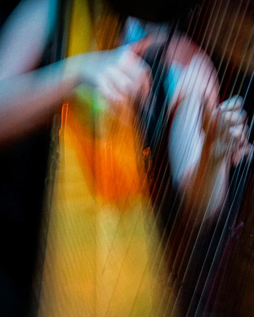 Art, I have yet to try ICM as an art form...no pun intended. So I treat it like I would if I was trying it for the first time. I'm learning a lot from your contributions. I like what you did with the colors. To me ICM should be less subtle. I see it as a subtle (but not too subtle) abstract style. As you can see I cropped it along vertical lines that I felt complimented the harp strings. The harp body inspired my tall portrait style. It also allowed more color. I erased the "u" shapes from the strings I felt were distracting. I boosted saturation, clarity, contrast and moved the tint out of magenta. All in all I have yet to pull the trigger on giving ICM a try. Hope springs eternal. Thanks for the inspiration. |