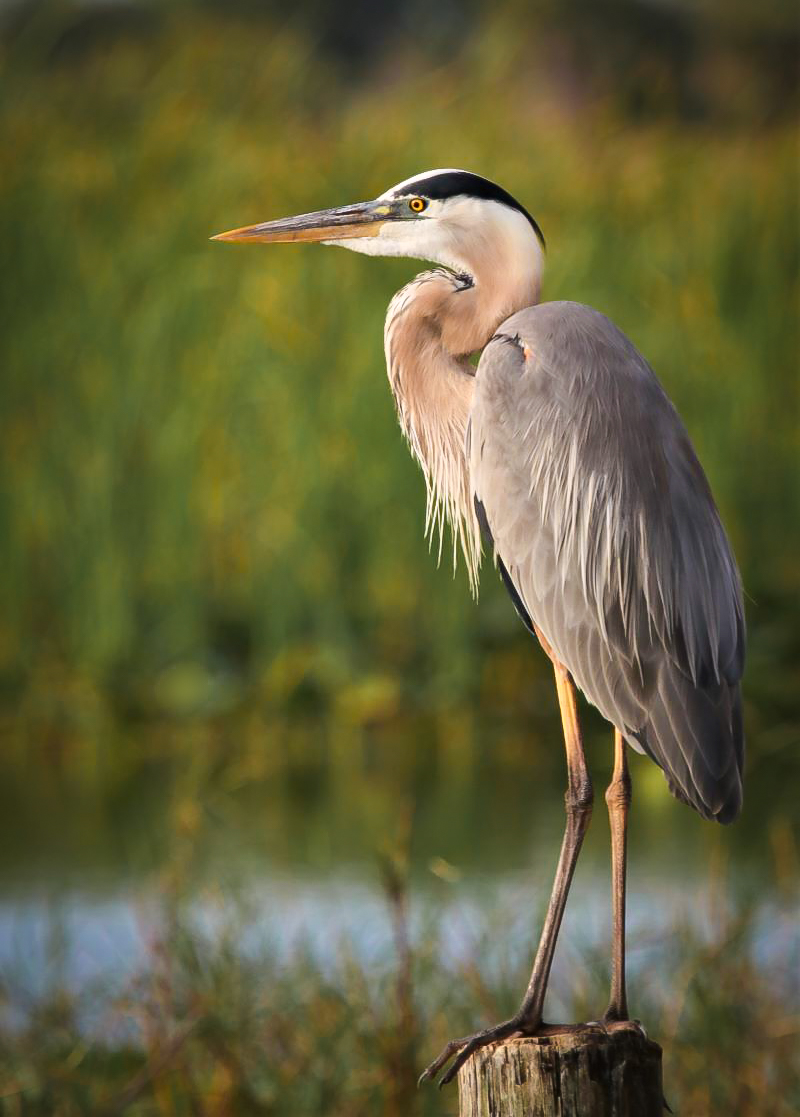 Marge, I think you have a beautiful iconic image of the great old fisherman. For me there was little to do to "make it mine". All my adjustments were done in Lightroom CC. The first think I did was crop off the jagged top that I felt added nothing to the Heron. I then added some exposure and went right to "detail" and added some sharpening. I reduced the green saturation to further highlight the heron and used an adjustment brush to eliminate a light glowing spot in front of the heron. I have found that if I need to reduce the harshness of a healing spot, I can use the texture and sharpen sliders to help blend the healed area. I then added a slight vignette and boosted vibrance and saturation just a bit to bring out a more blue tint. Either way, you have a beautiful wall hanger. Nicely done. |