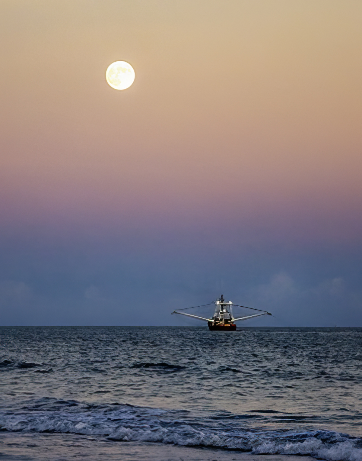 This is a wonderful seascape. I love your colors. I did go in a different direction. I cropped to remove what I thought was unnecessary beach. Although it did add depth, I felt the waves provided context so kept some of them to zoom in to the boat and emphasize it more. I also added a little sky tent to the water. I removed the light on the horizon. Overall, it is a beautiful image. |