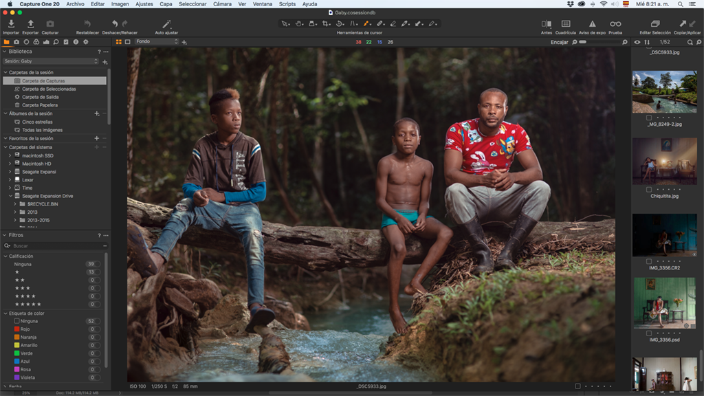 The process is focused on highlighting the man and his children, to locate ourselves, we are in a waterfall in the middle of the jungle on a mountain to do a session with a fitness trainer, to get to the town where the waterfall is, it took us almost two hours with the 4x4, to travel about 35 km from where the roads end to the town. That man is the "caretaker" of the place, he and his children helped me to upload my equipment, they took us to the place where the waterfall was, they climbed the trees and gave us avocados, finally I decided to take a photo so they would have a memory of this. I upload the color photo that I send them. As you will see in the processing for me, I dramatized the environment to focus only on them, as the jungle is very closed behind them I put a flash behind them to one side to cut out something from the background and the main one that illuminates them, I am inside the stream |